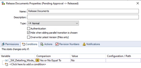 Additionally, there is a new system variable in SOLIDWORKS PDM, “_SW_Detailing_Mode.” This system variable gives you the option to prevent SOLIDWORKS drawings from transitioning if they have not been rebuilt and contain incorrect information.