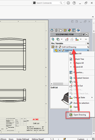 SOLIDWORKS PDM now allows users to open drawings from the SOLIDWORKS PDM add-in in SOLIDWORKS. Even if users create more than one drawing from a single model, PDM’s superlative reference management will find any associated drawings.