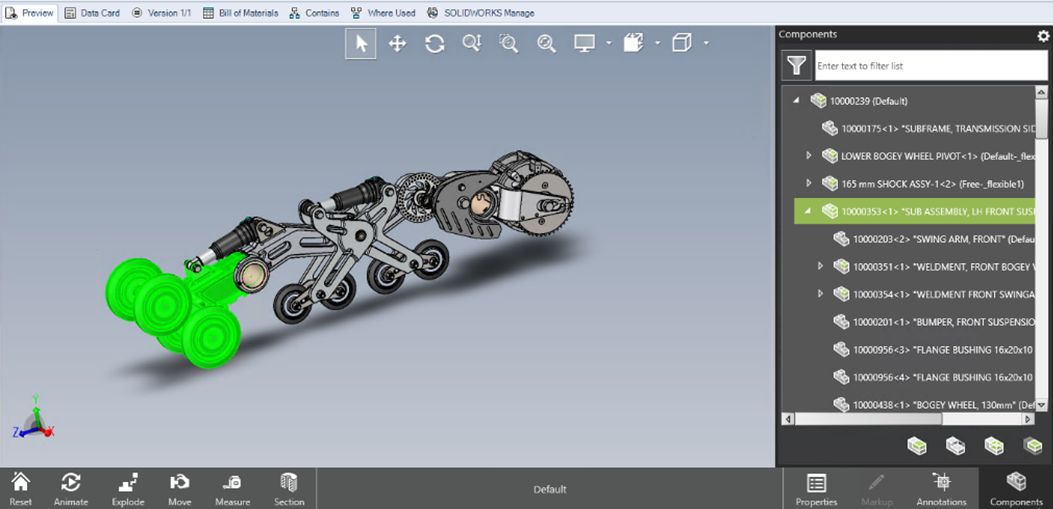 SOLIDWORKS PDM’s Preview tab features full eDrawings viewer functionality. Users no longer need to open a SOLIDWORKS file separately to view file properties and assembly components with this enhancement.