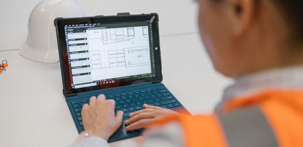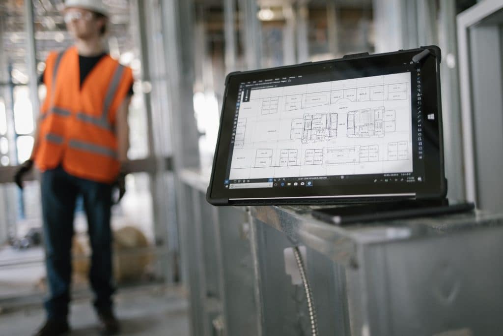 Construction worker using Bluebeam Revu