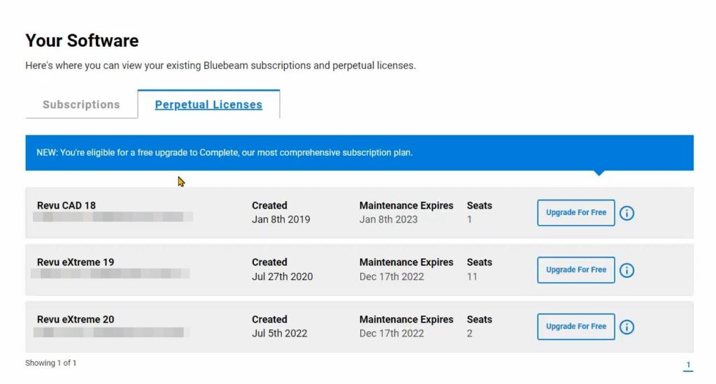 After successfully accessing the site, the next page will show two tabs: “Subscriptions” and “Perpetual Licenses.” This tab will be empty if you have not bought new subscription-based seats. You will click “Perpetual Licenses,” where your upgradable seats are accessed.