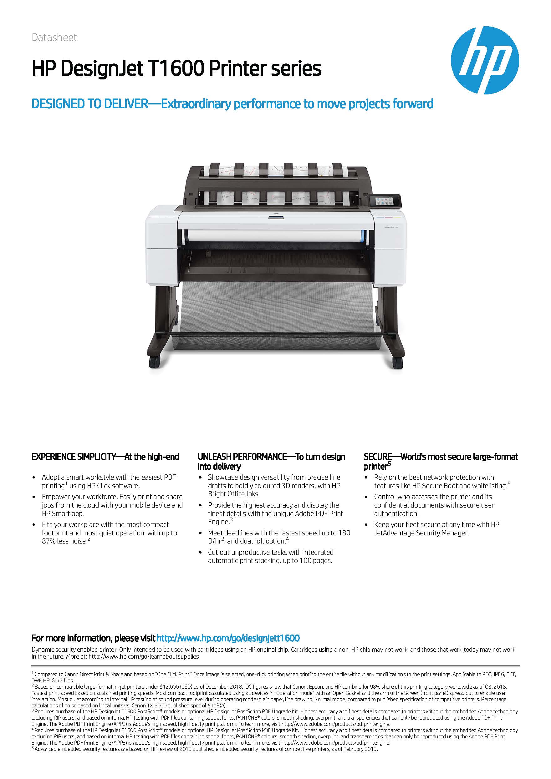 HP DesignJet T1600 Printer Series Datasheet