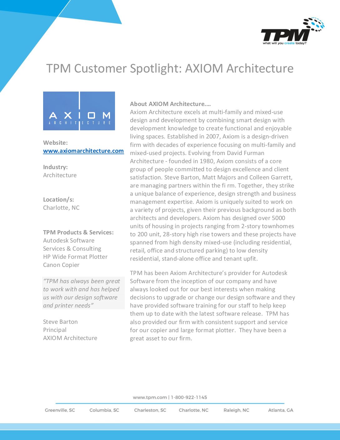 CUSTOMER SPOTLIGHT: AXIOM ARCHITECTURE