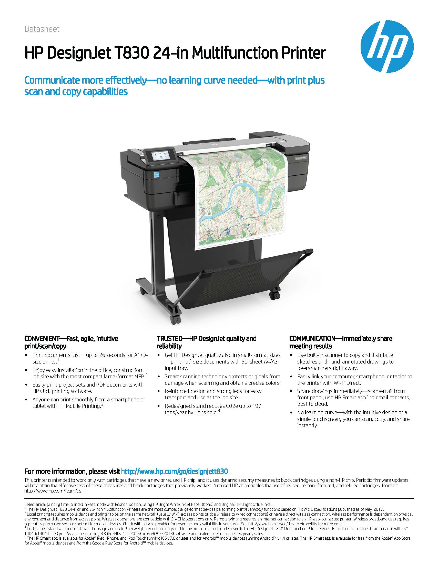 HP DesignJet T830 24-in Multifunction Printer Datasheet