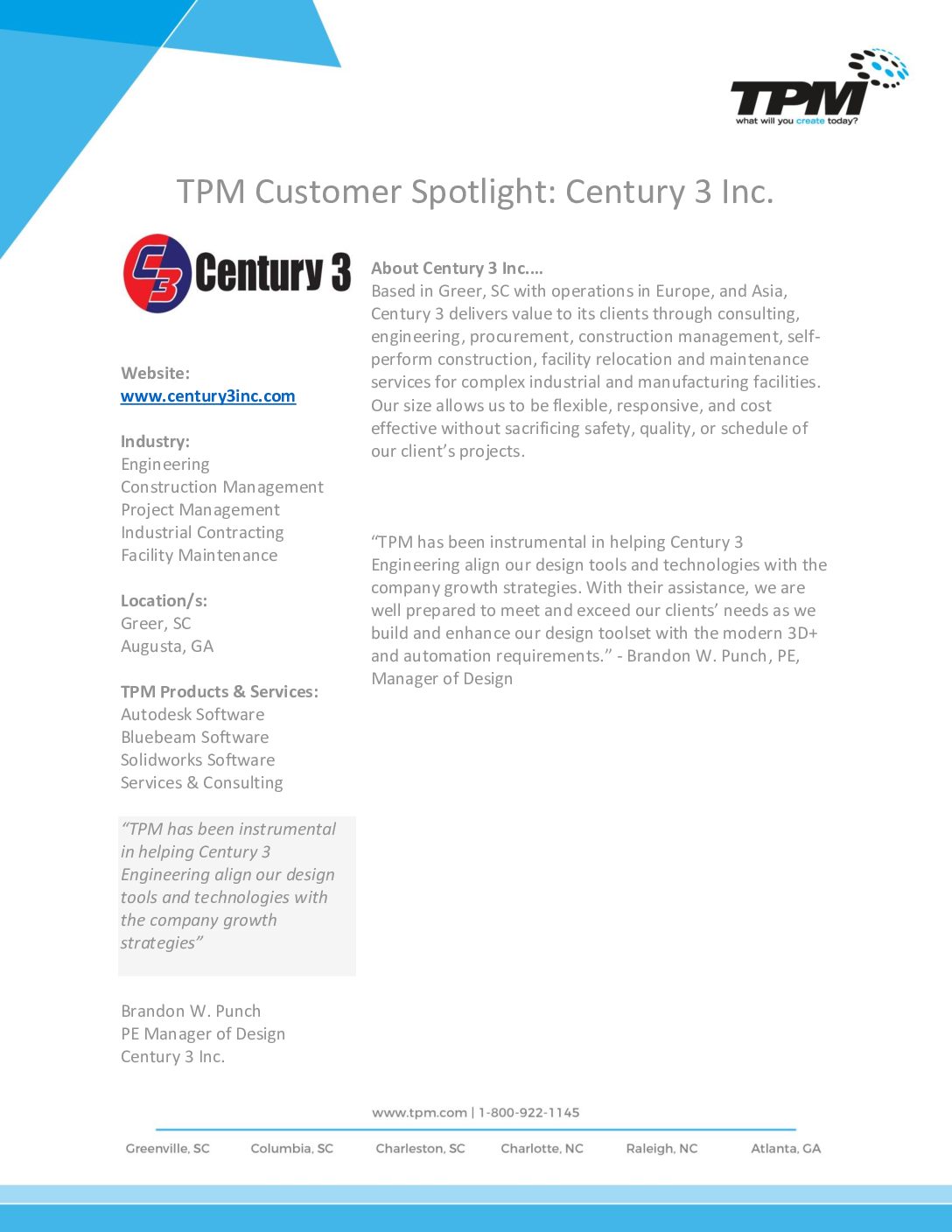 CUSTOMER SPOTLIGHT: CENTURY 3 INC.
