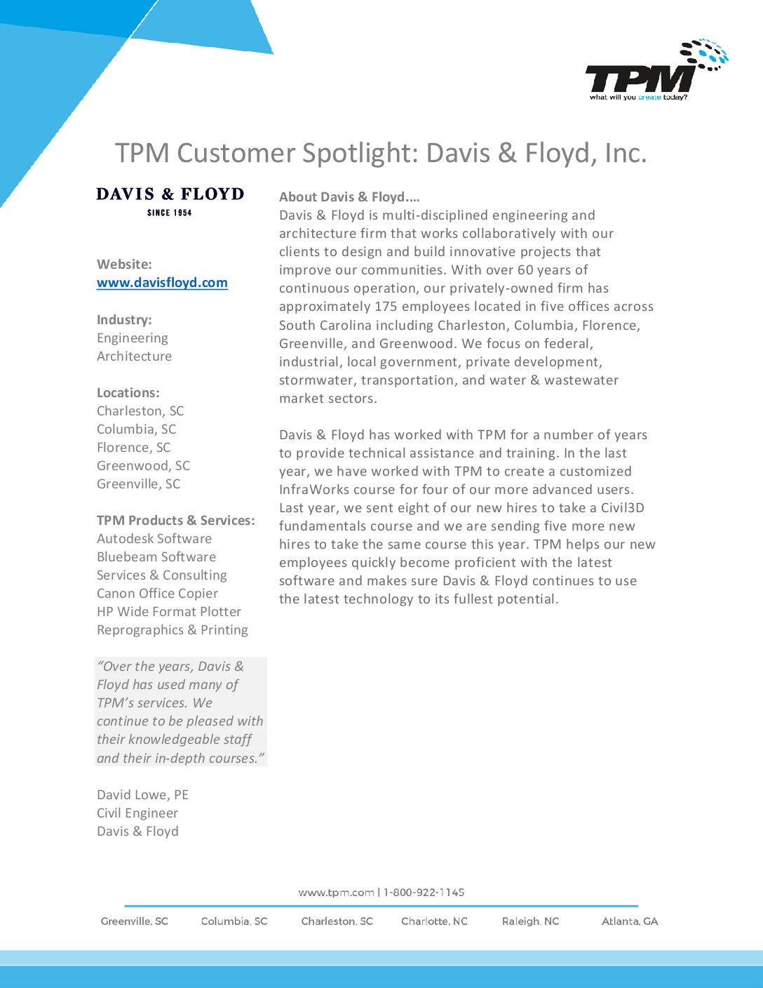 CUSTOMER SPOTLIGHT: DAVIS & FLOYD