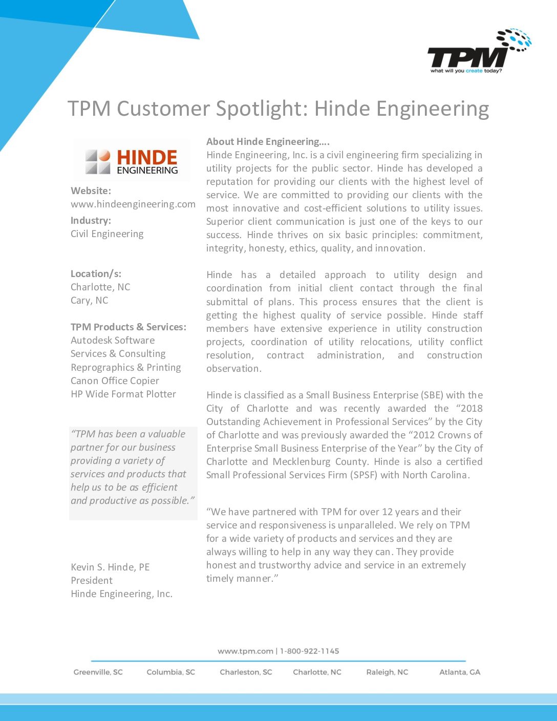CUSTOMER SPOTLIGHT: HINDE ENGINEERING