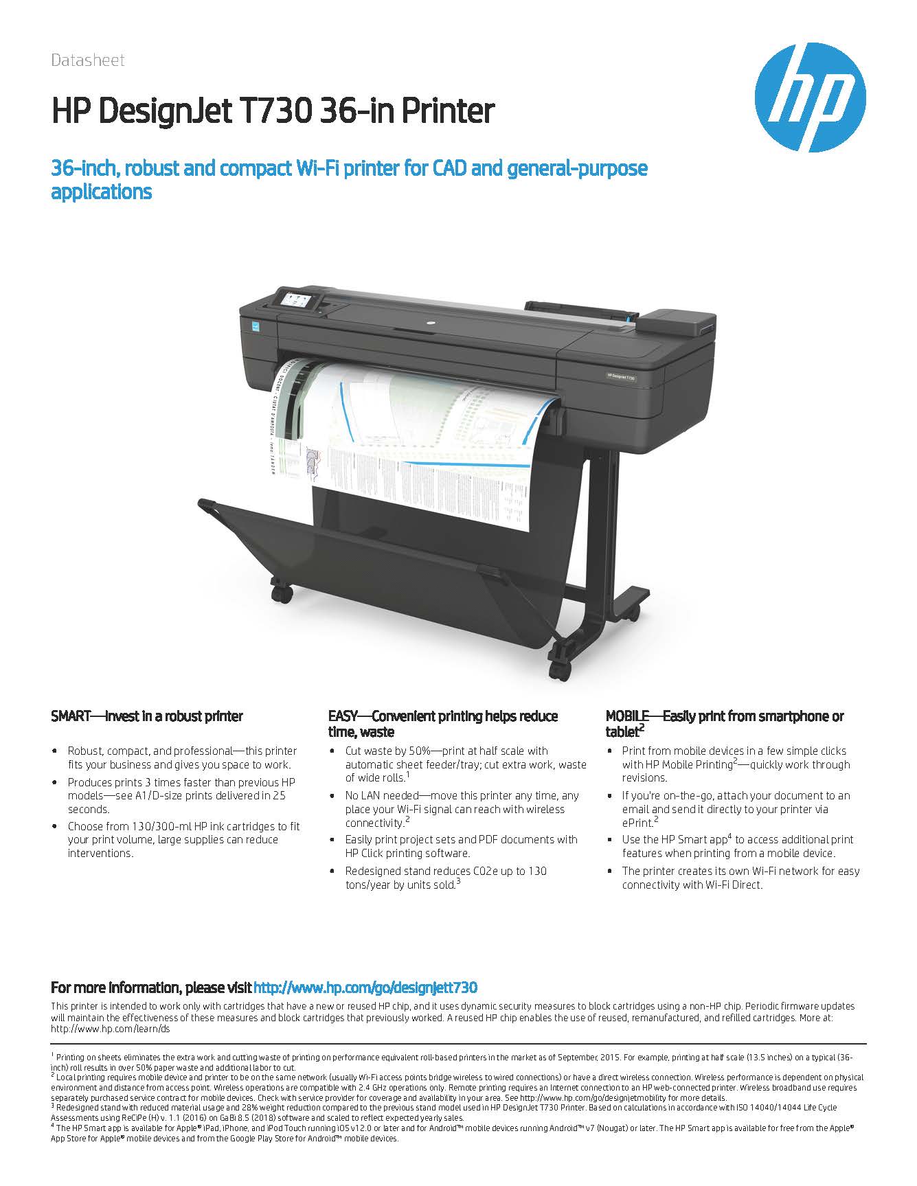 HP DesignJet T730 Printer Datasheet