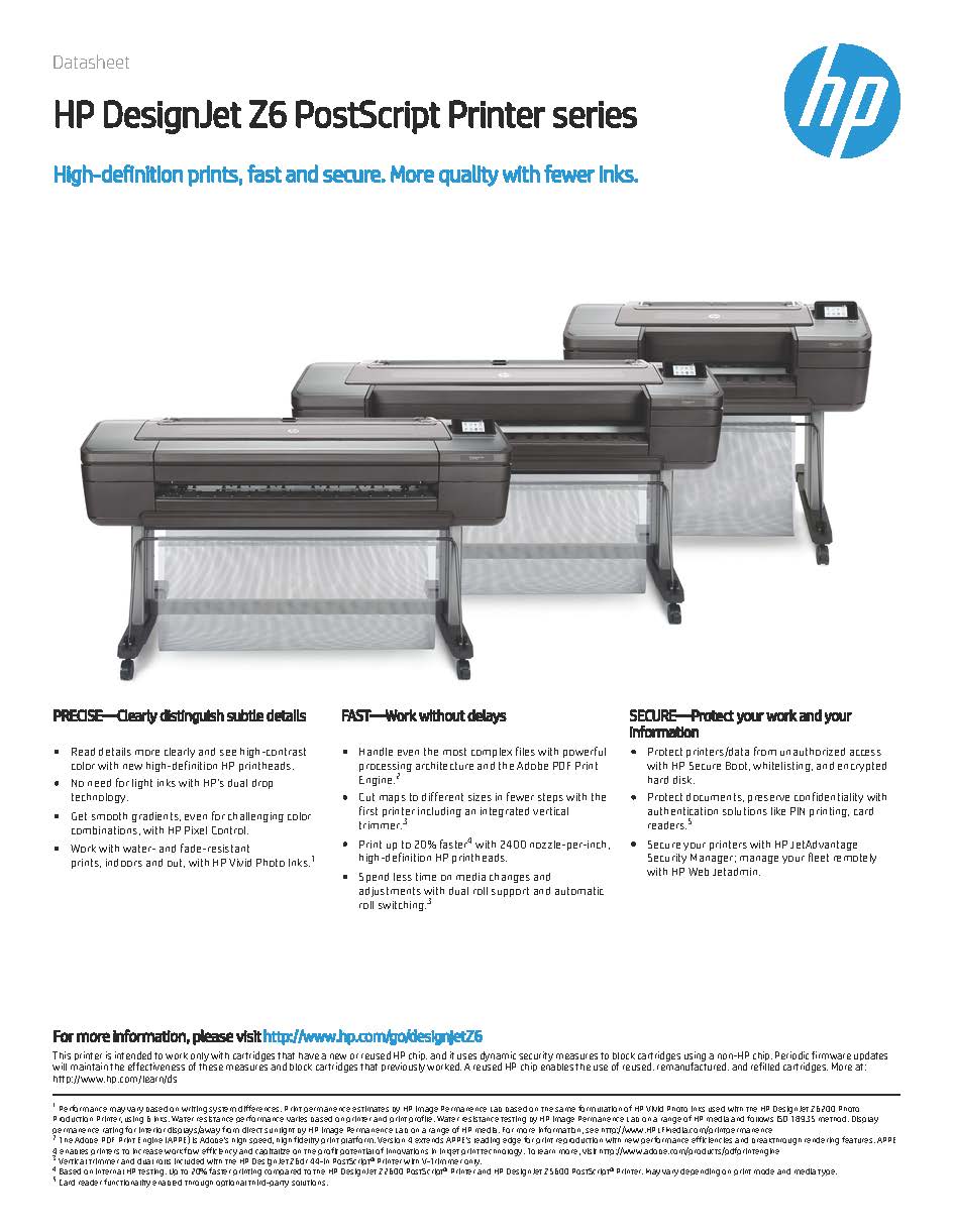 HP DesignJet Z6 PostScript Printer Series Datasheet