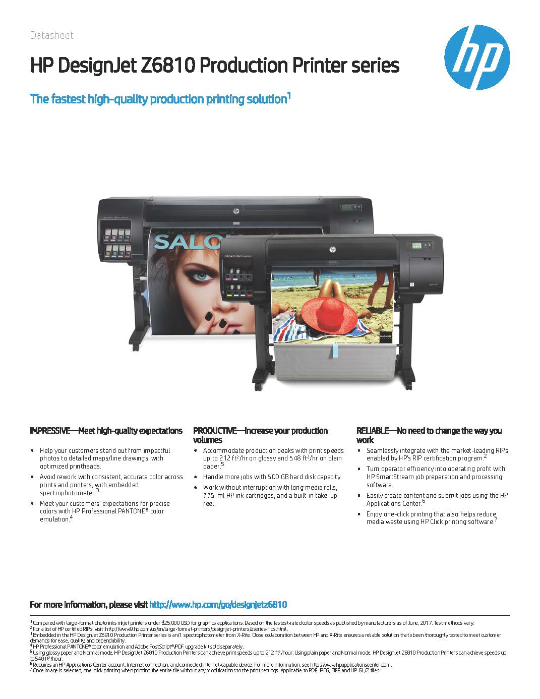 HP DesignJet Z6810 Production Printer Series Datasheet