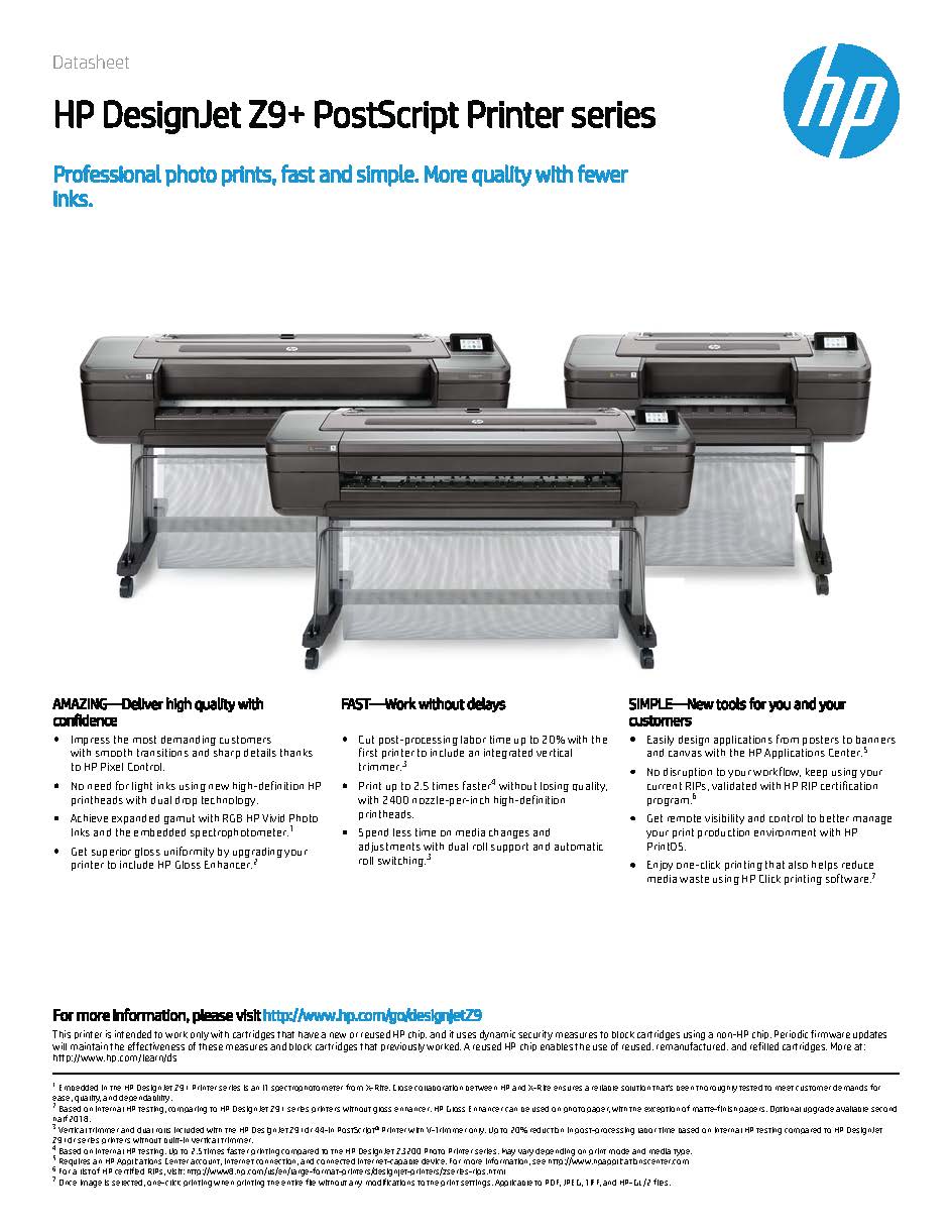 HP DesignJet Z9+ PostScript Printer Series Datasheet