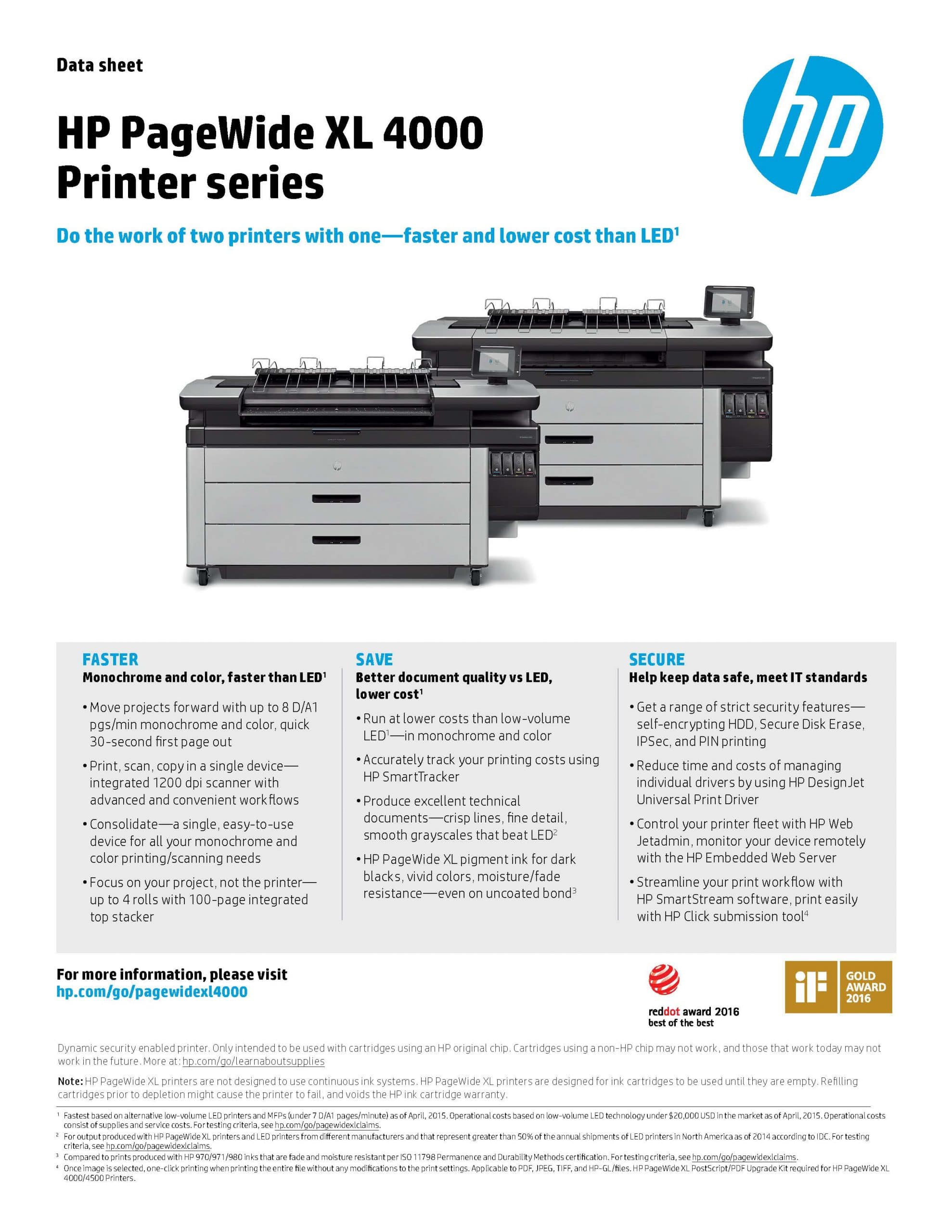 HP PageWide XL 4000 Printer Series Datasheet