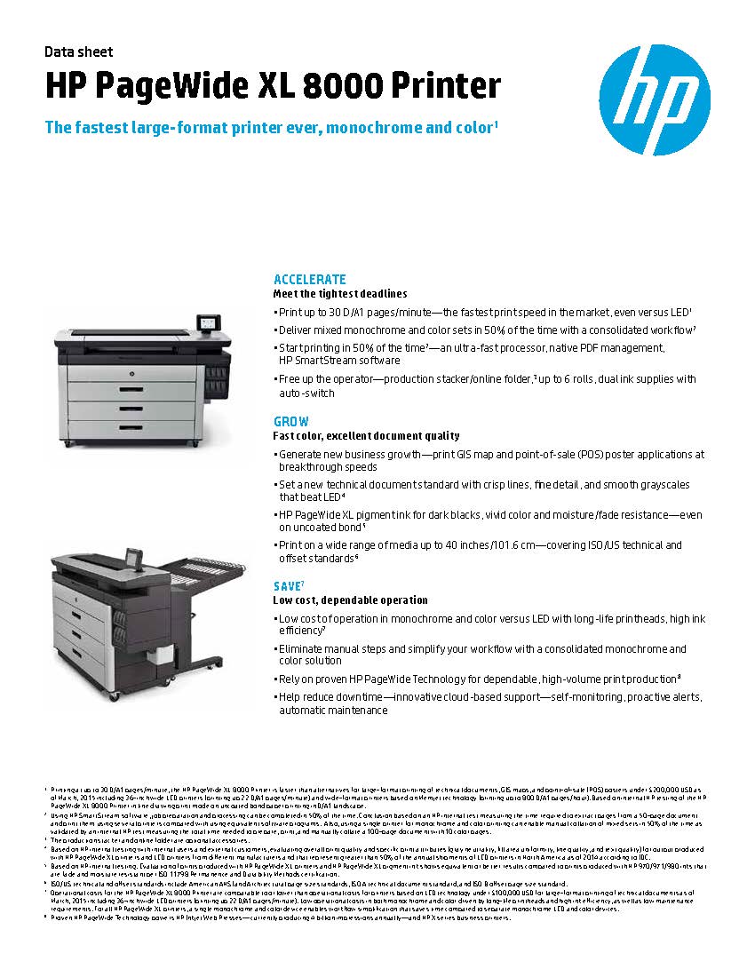 HP PageWide XL 8000 Printer Datasheet