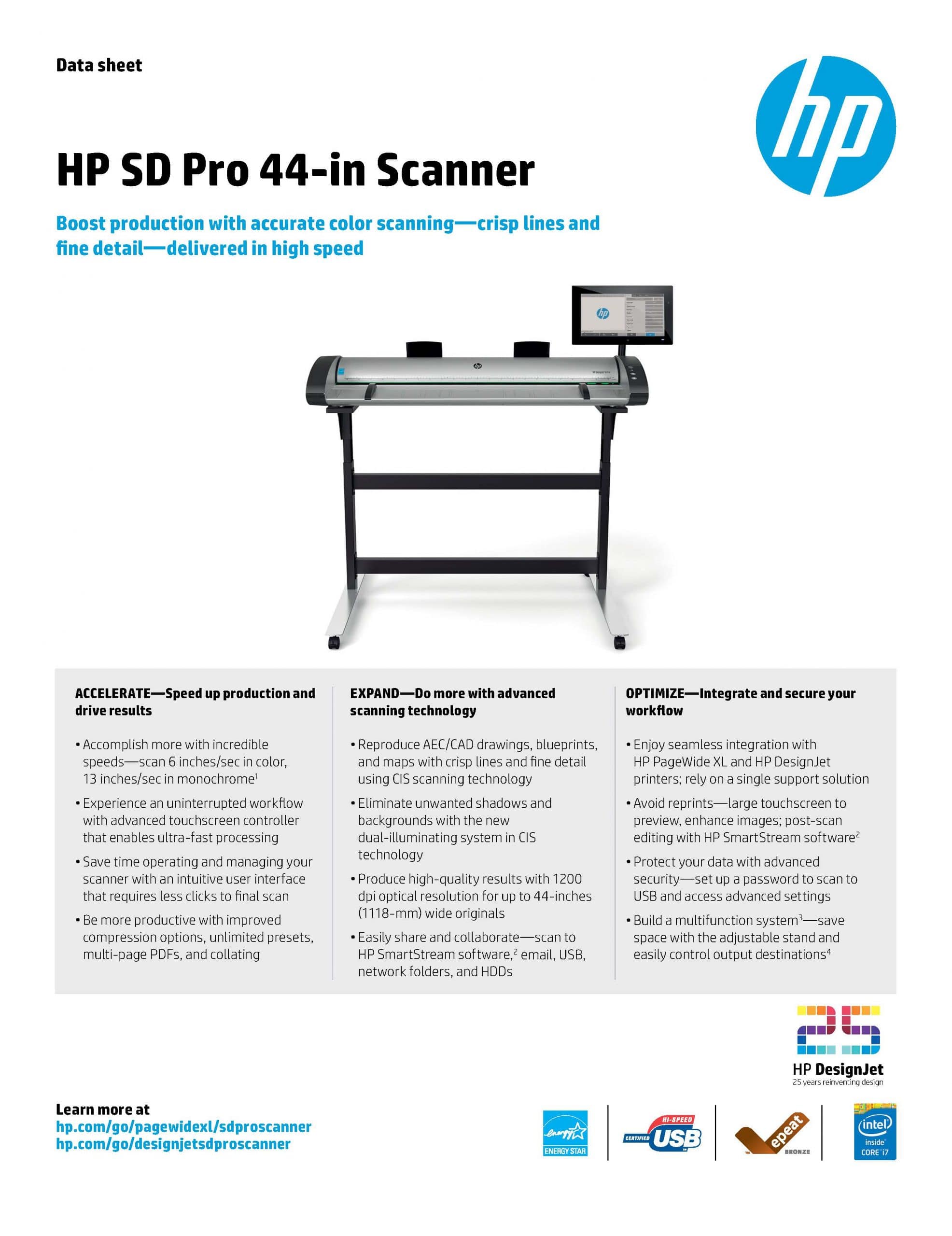 HP SD Pro 44-in Scanner Datasheet