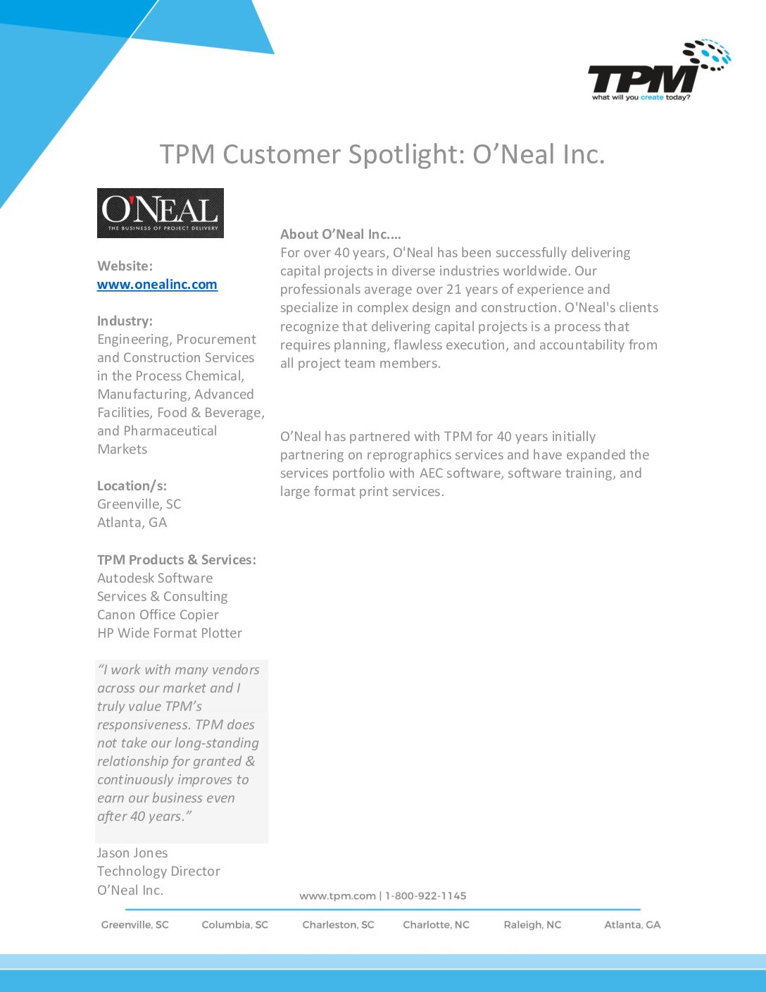 CUSTOMER SPOTLIGHT: O'NEAL INC.