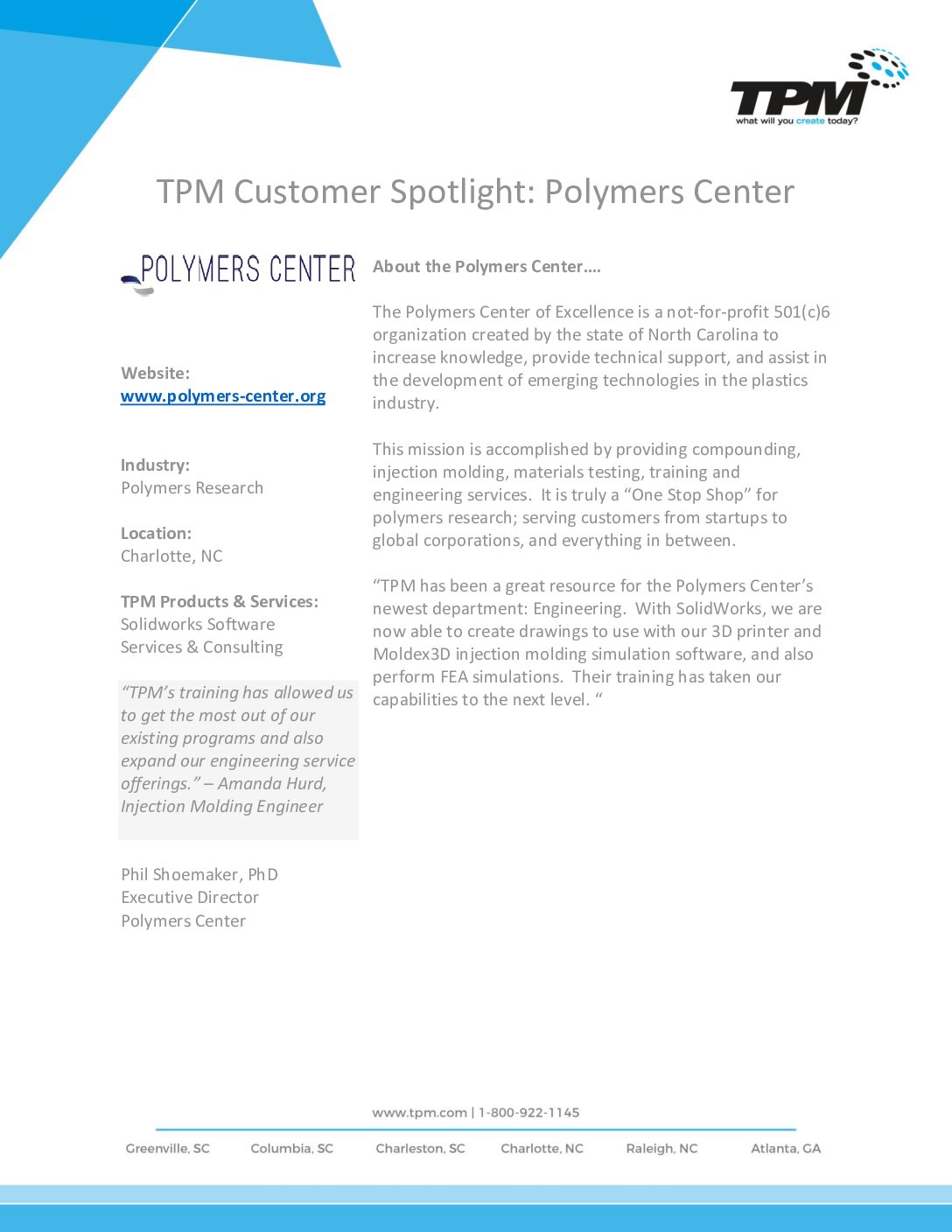CUSTOMER SPOTLIGHT: POLYMERS CENTER
