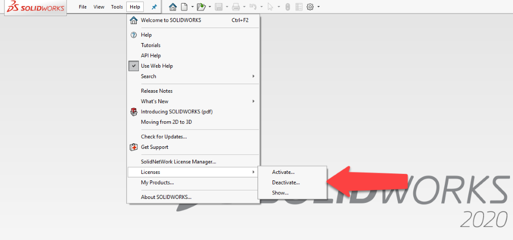 To move a standalone activation of SOLIDWORKS, the user must deactivate from the active machine by going to Help> Licenses> Deactivate.  This will not interfere with your current installation; you will just need to follow the activation steps again below to use the license at this machine again later.