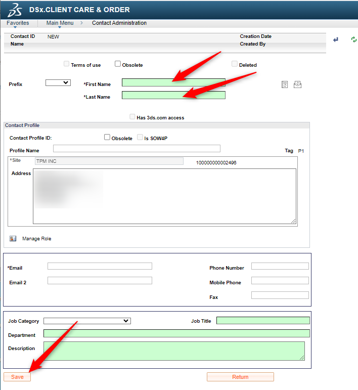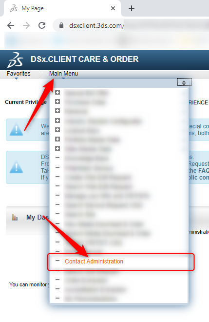 All previous administrators and members of the SOLIDWORKS Admin Portal have already been transferred to the DSx.Client Care and Order Portal as contacts. Any new employees will need to be added by a Security Administrator.