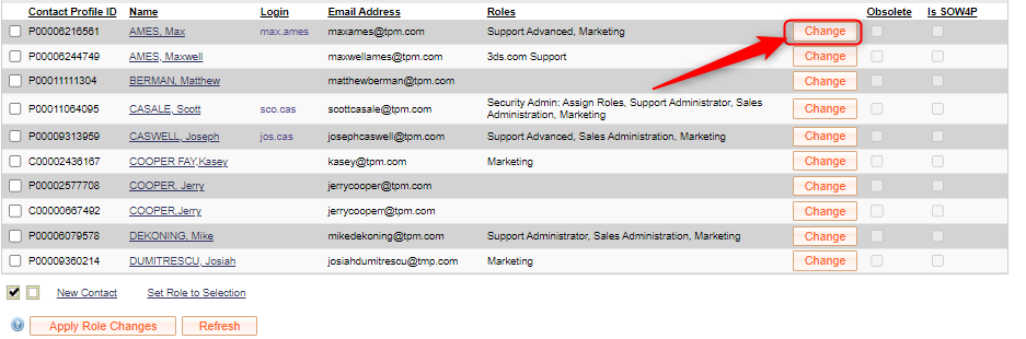 6. To add roles or update an existing user’s role(s), select “Change” (Figure 6)