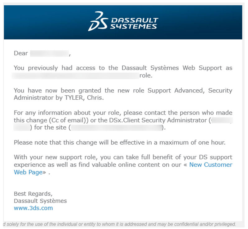 10. The Security Administrator and the user will receive an email confirming the changes (Figure 10)