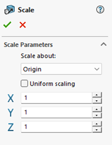 3. Access the Scale feature (Insert > Features > Scale).