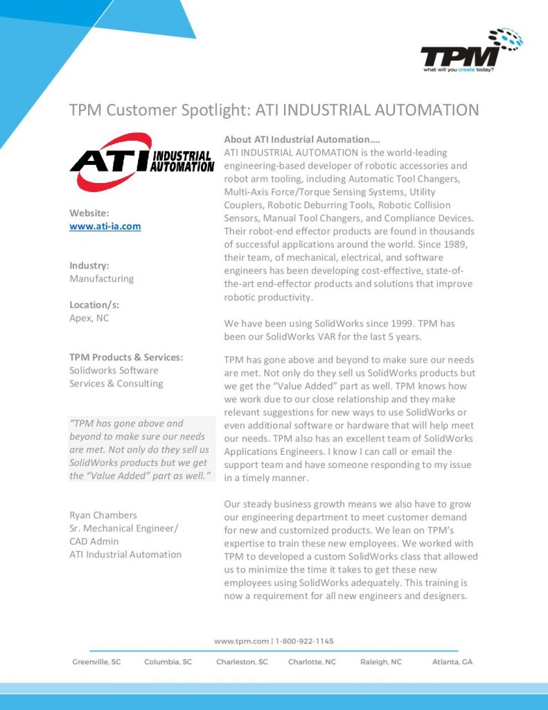 CUSTOMER SPOTLIGHT : ATI INDUSTRIAL AUTOMATION