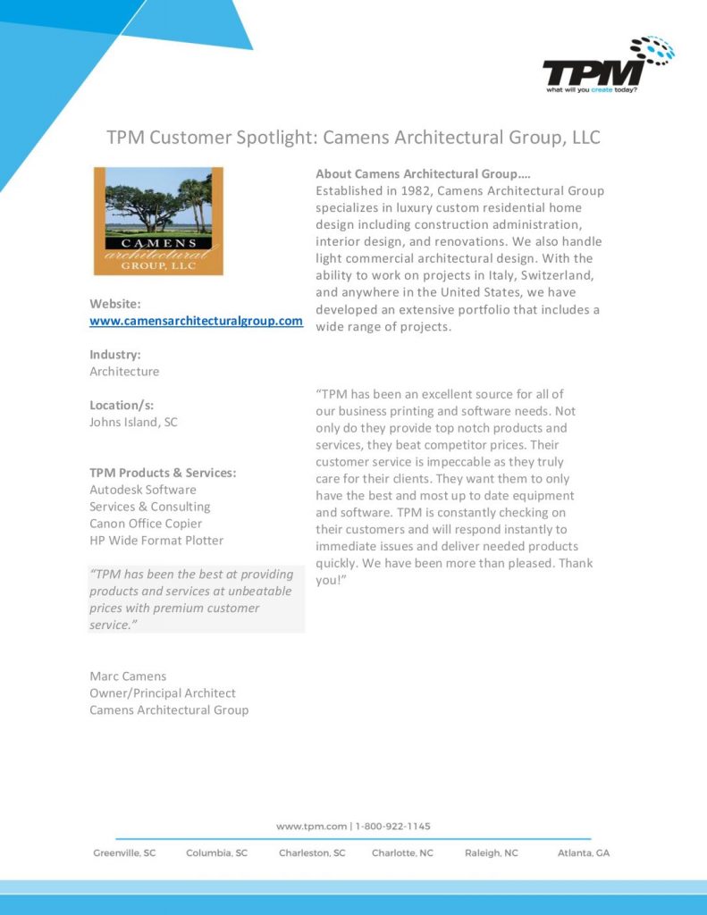 CUSTOMER SPOTLIGHT : CAMENS ARCHITECTURAL GROUP, LLC