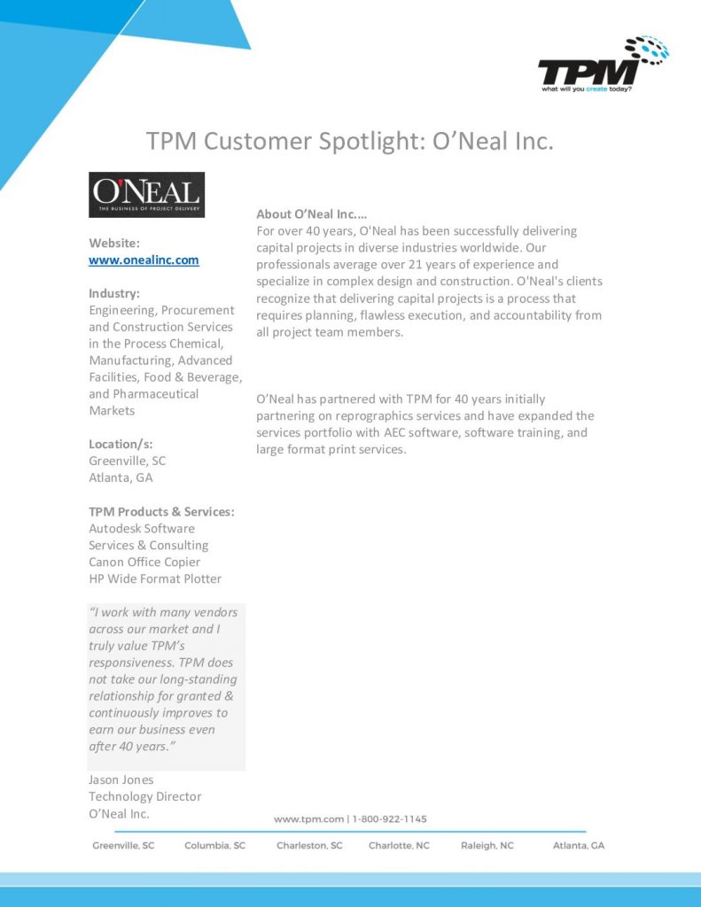 • CUSTOMER SPOTLIGHT: O’NEAL INC.