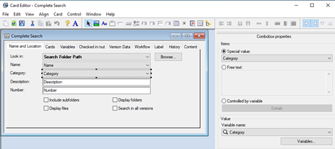 The new SOLIDWORKS PDM 2022 Card Editor Search Function