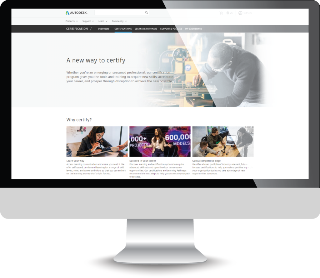 Image of a screen showing Autodesk Certification levels