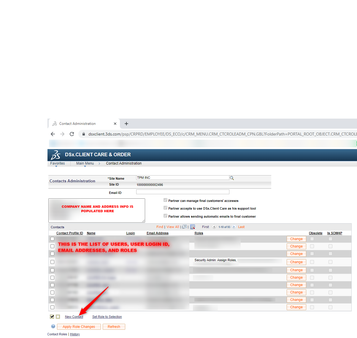 All previous administrators and members of the SOLIDWORKS Admin Portal have already been transferred to the DSx.Client Care and Order Portal as contacts. Any new employees will need to be added by a Security Administrator.